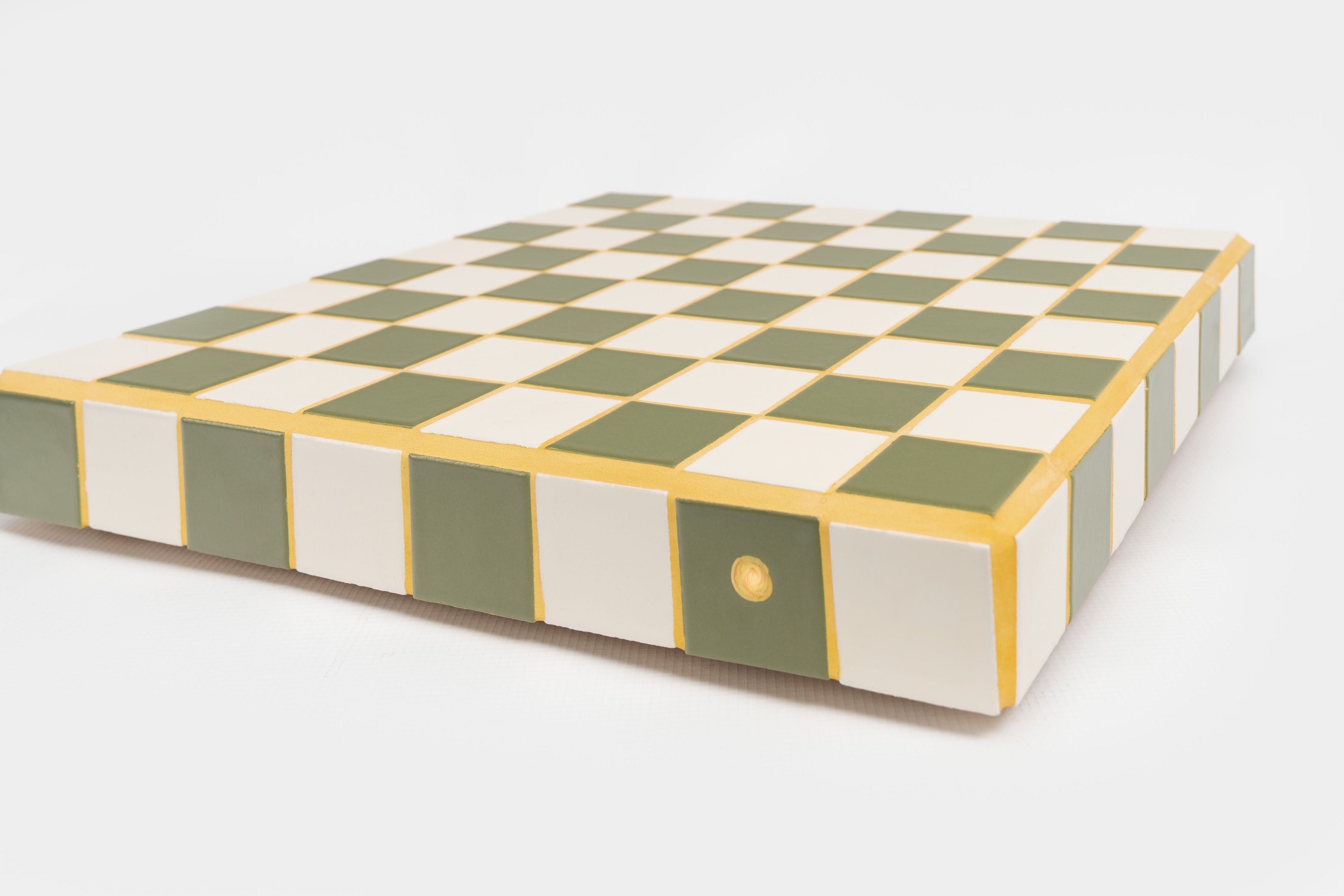Le Chess Board is made of light pine wood and glazed porcelain ceramic tiles of 5 x 5 cm, made in Italy for Soel.d.