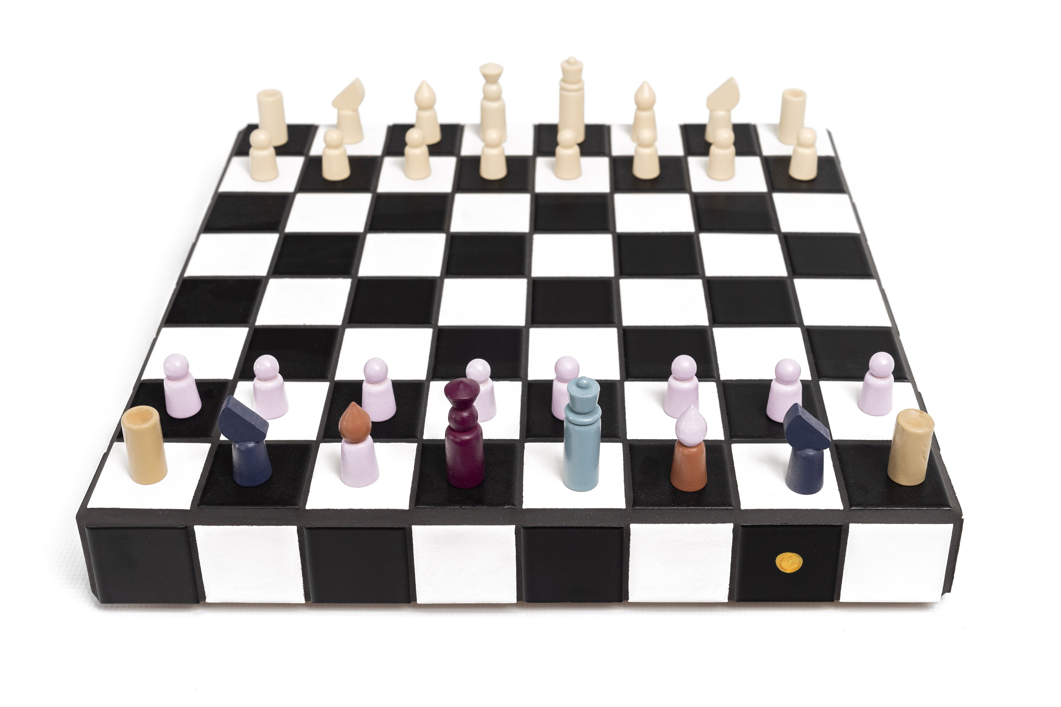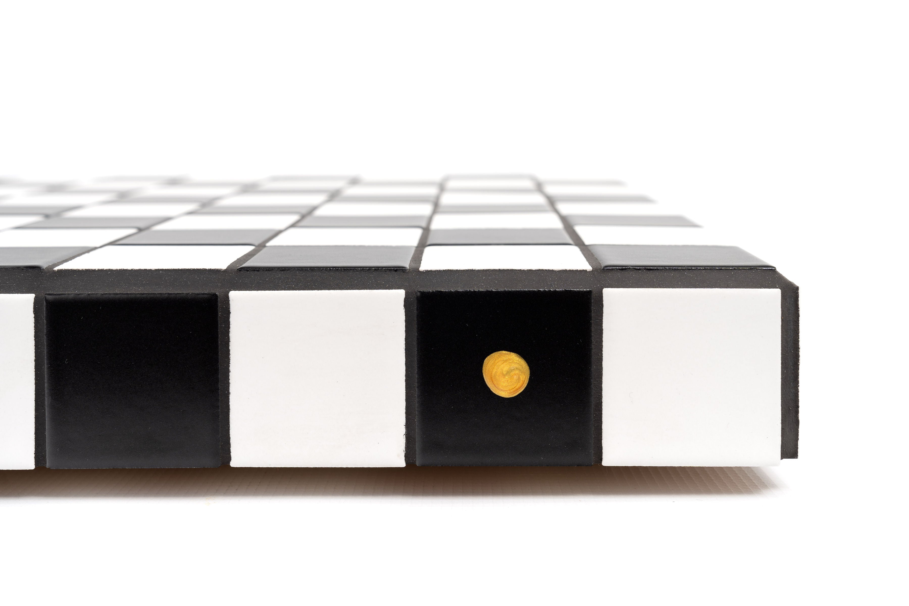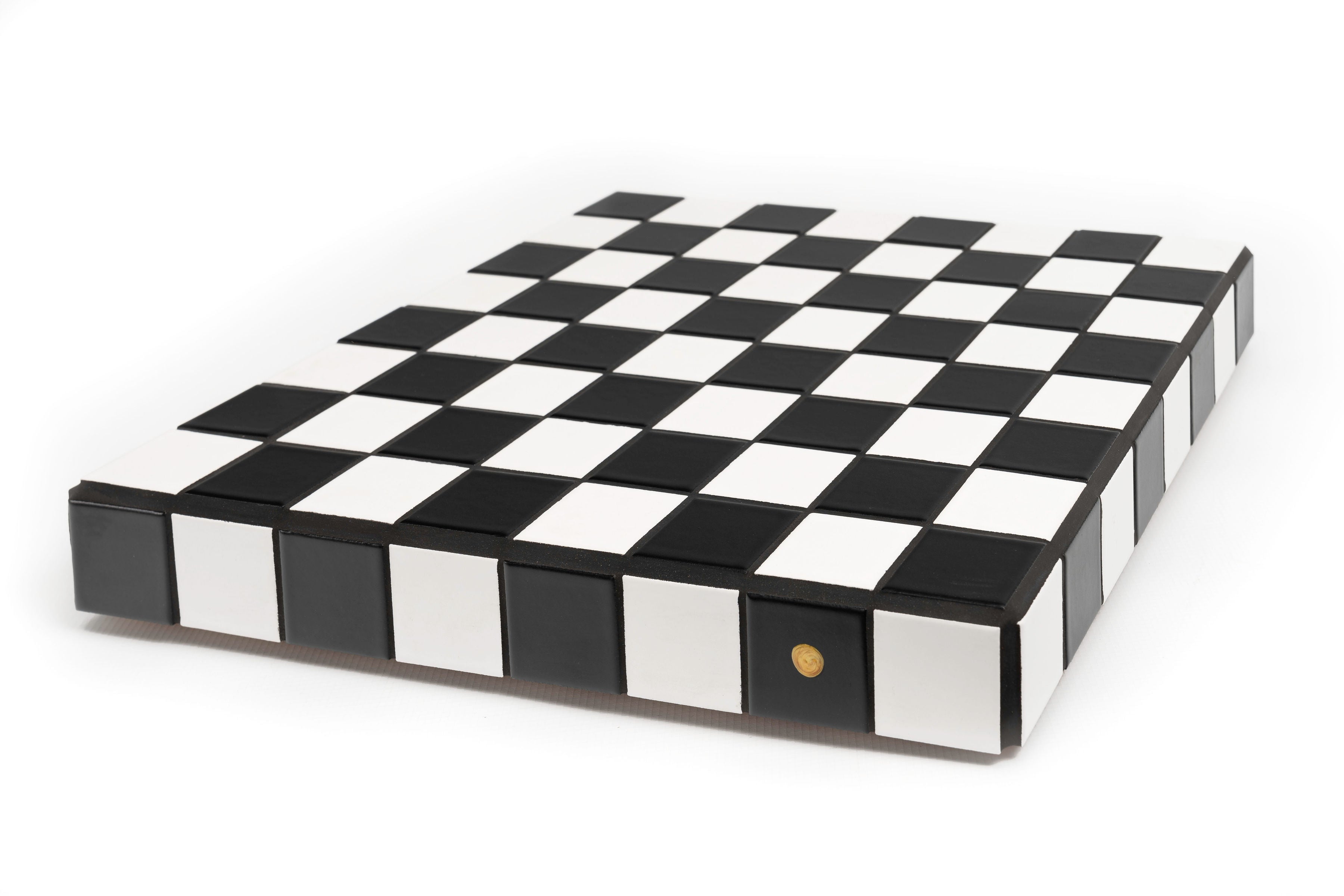 Le Chess Board is made of light pine wood and glazed porcelain ceramic tiles of 5 x 5 cm, made in Italy for Soel.d.
