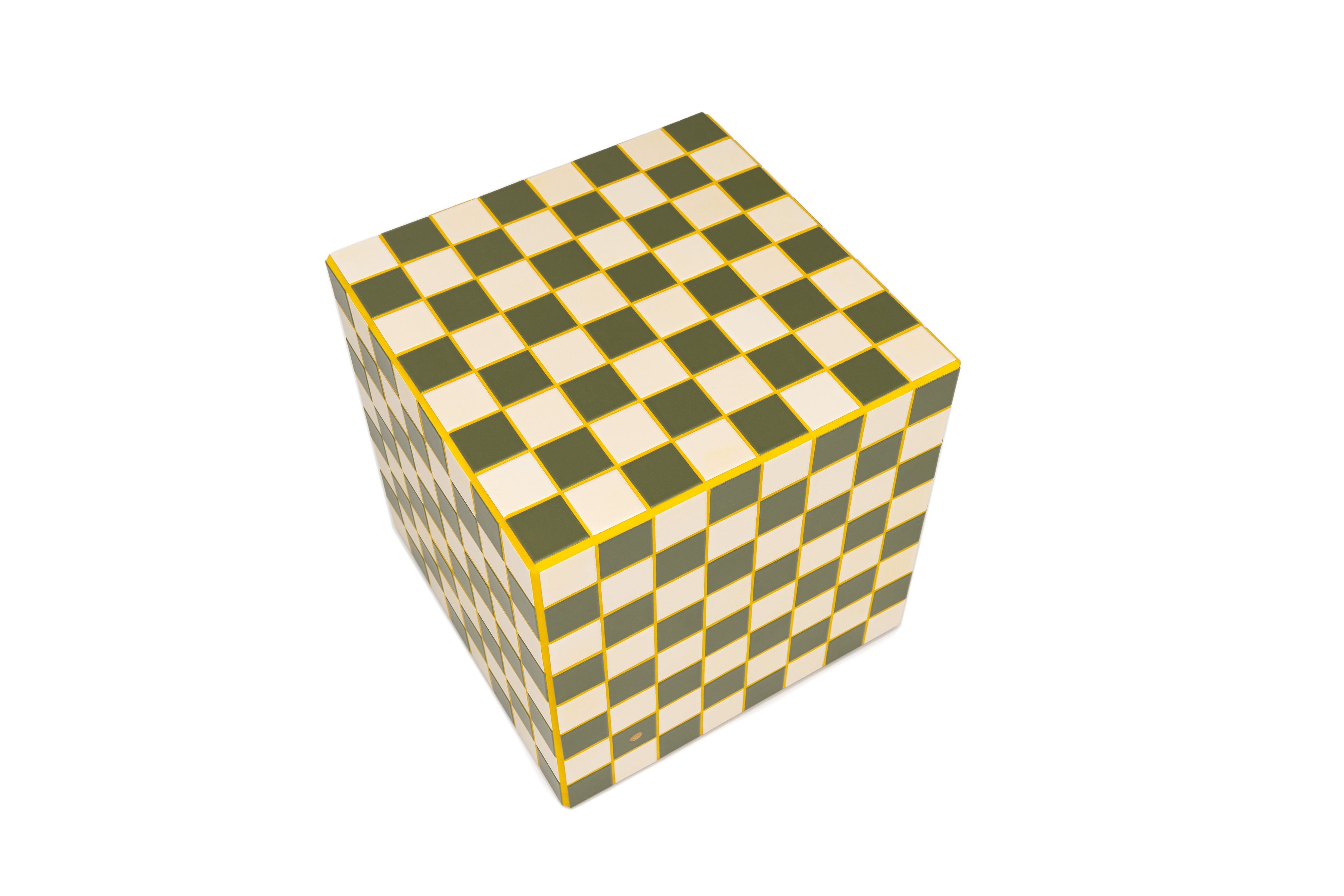 Introducing Le Cube - the perfect addition to any room. This duel-purpose side table and chess board is a must-have for gamers and decor enthusiasts alike. Its compact size allows for versatile use, whether as a table or seat. Choose from a variety of custom tile colors to make it uniquely yours. Add a timeless and edgy touch to your interior with its graphic lines. Checkmate, anyone?